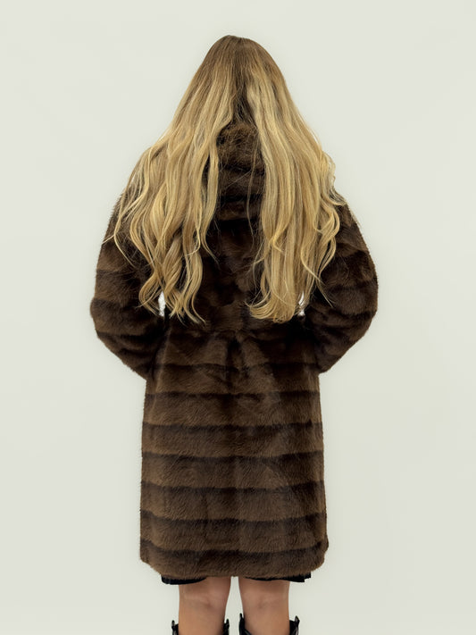Manteau Long en Éco-fourrure Marron avec Ceinture