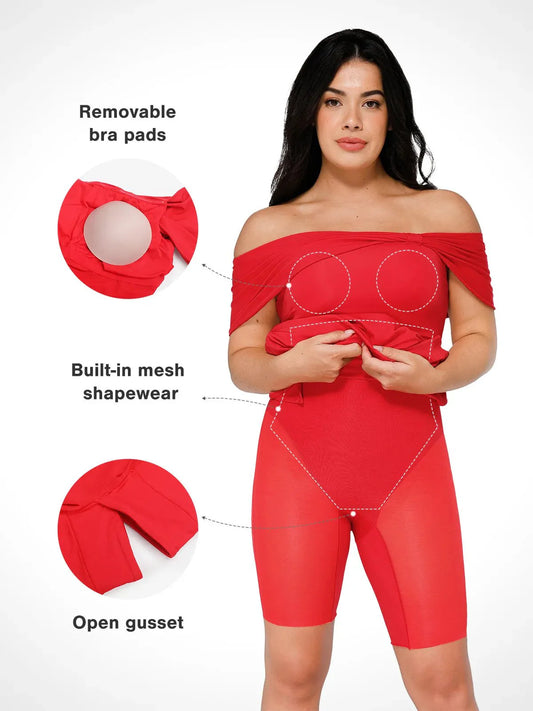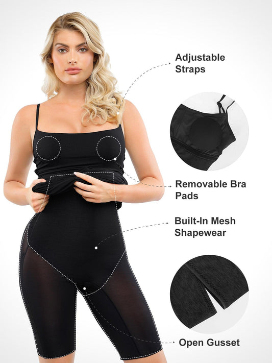 Combinaison Shapewear à Encolure Carrée avec Contrôle du Ventre et Jambes Larges