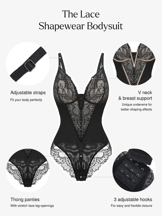 Body Sculptant Complet en Dentelle avec Décolleté Plongeant