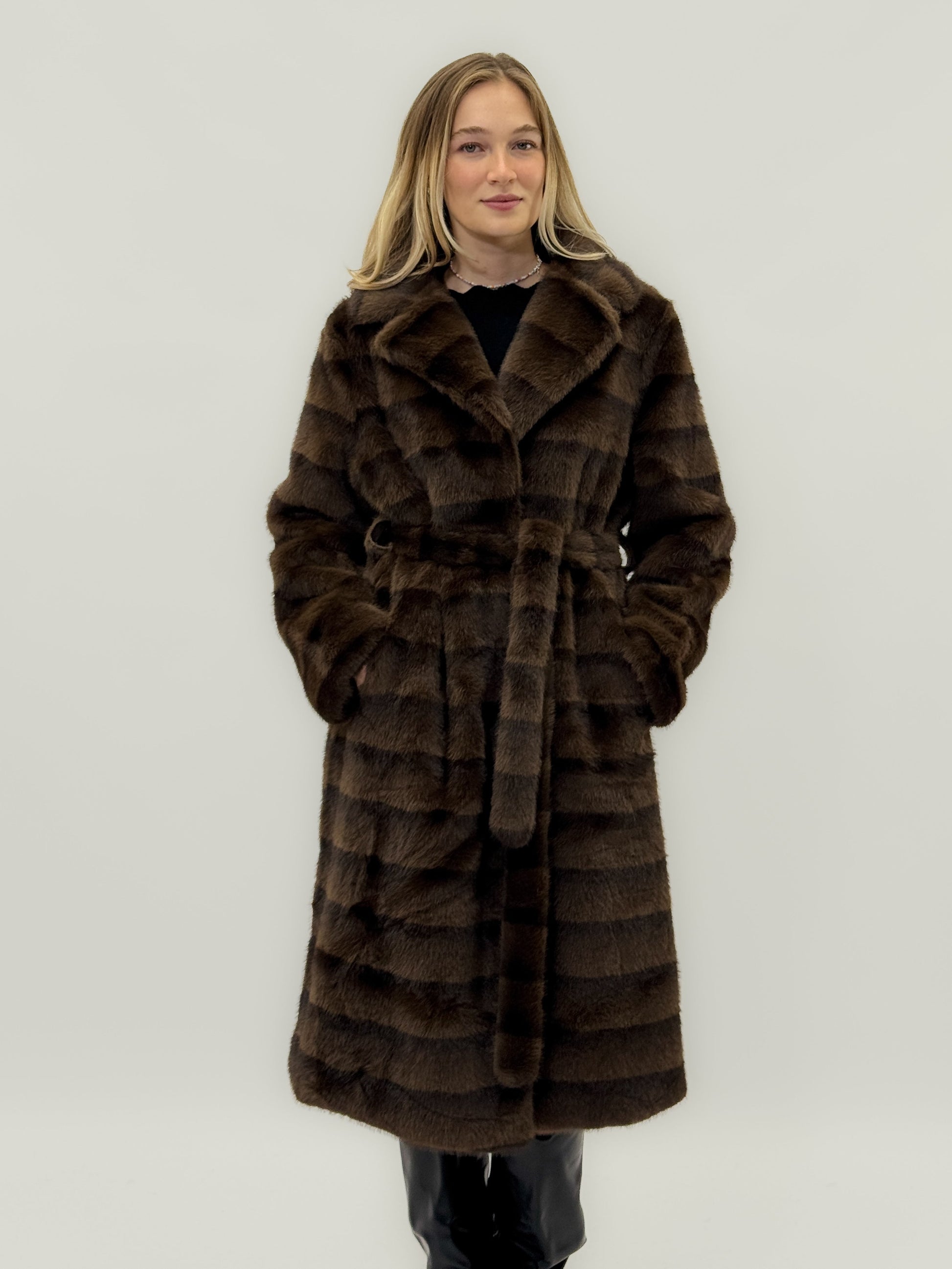 Enveloppant et raffiné, ce manteau long en fausse fourrure est la pièce incontournable de l'hiver. Doux au toucher, avec une ceinture coordonnée qui met en valeur la taille et de grands revers pour un look élégant et féminin. Parfait à porter aussi bien avec des tenues décontractées que de soirée.