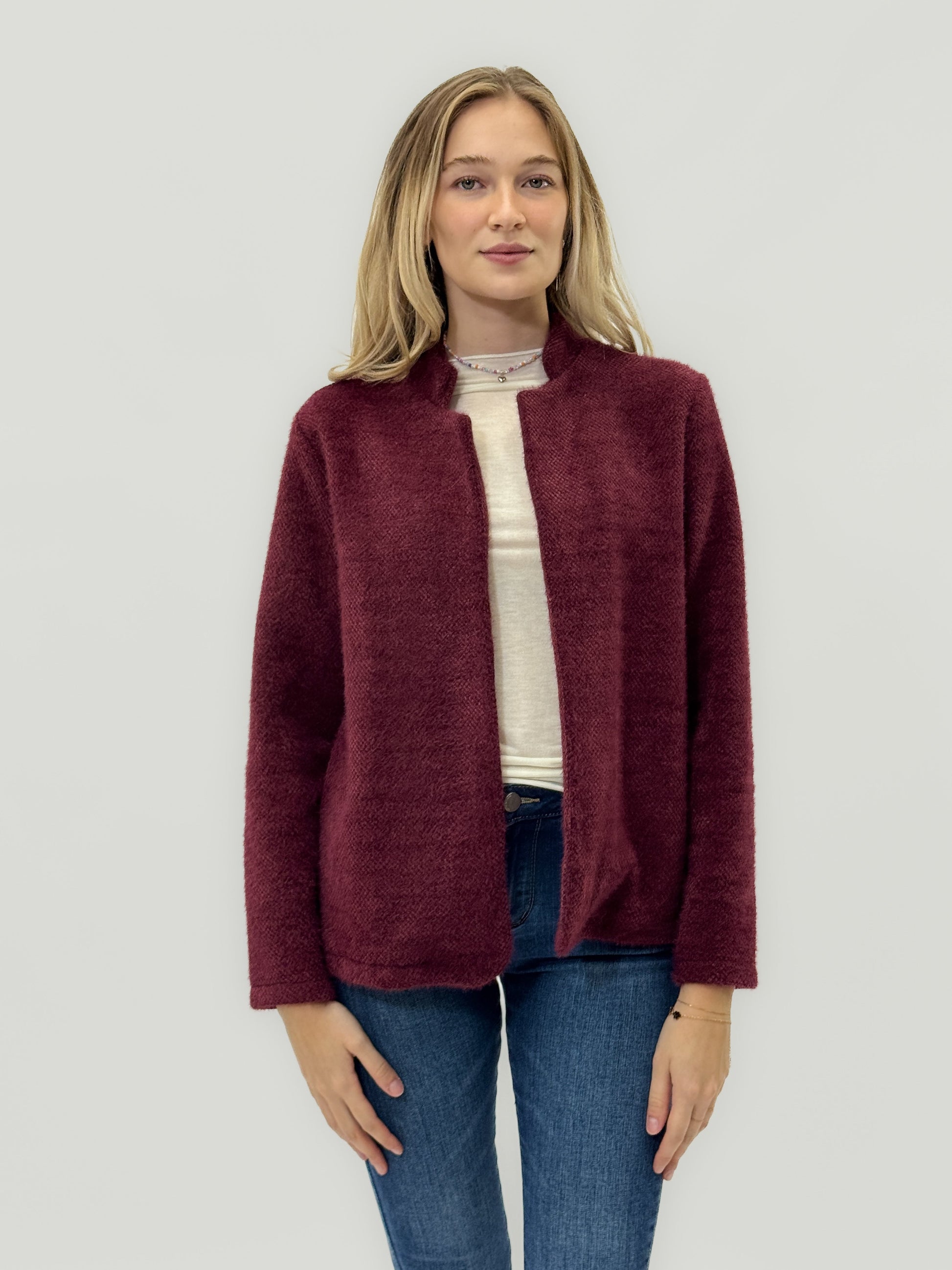Élégante et polyvalente, cette veste est le vêtement idéal pour un look casual chic lors des journées d'automne et d'hiver. Fabriquée en tissu doux et chaud, elle présente un design minimaliste avec un col chinois, des manches longues et une coupe droite qui met en valeur la silhouette. Parfaite à porter comme un manteau léger ou comme un cardigan raffiné.