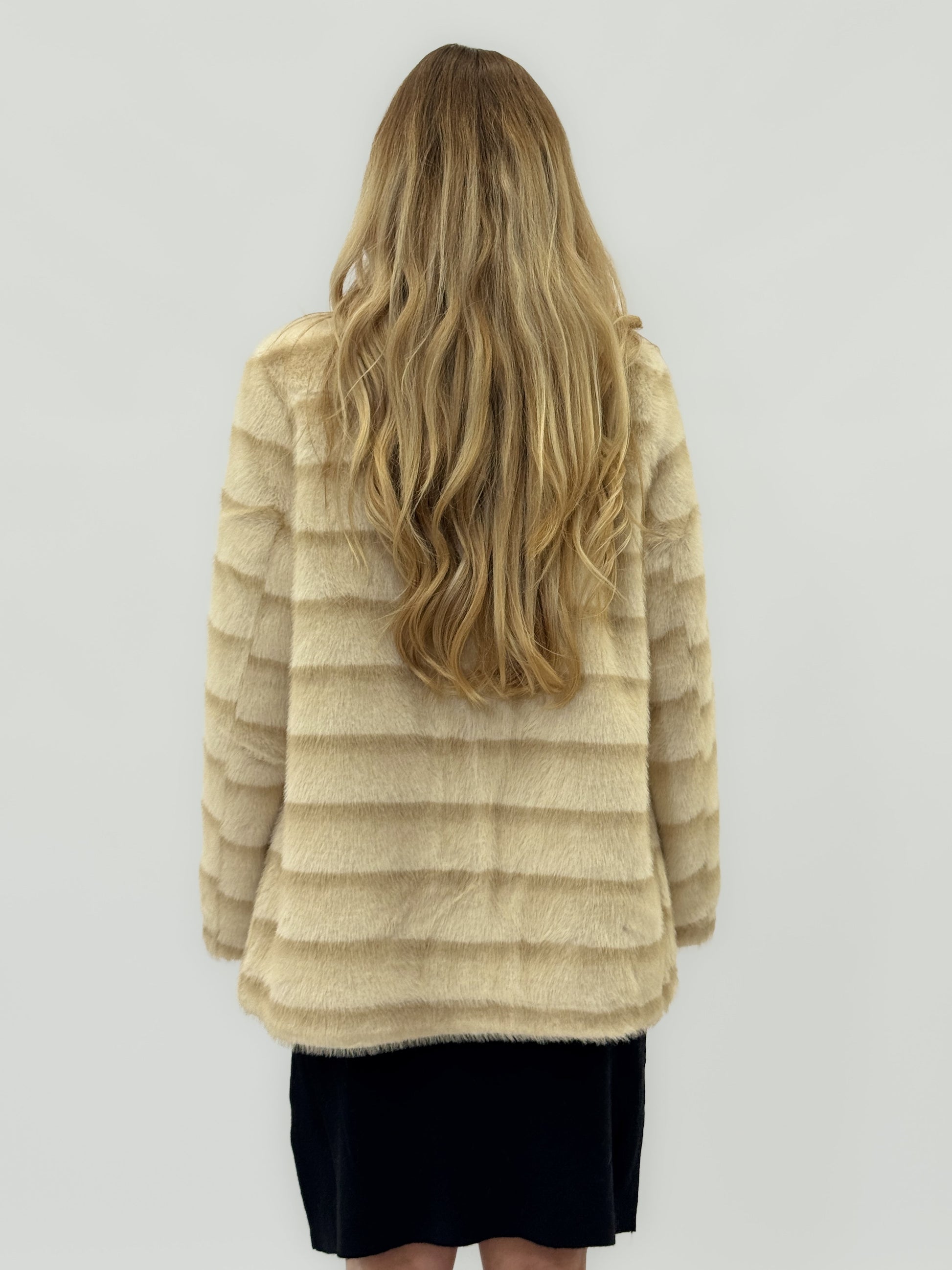 Fabriquée en douce fausse fourrure effet vison, elle offre chaleur et confort tout en conservant une ligne élégante et féminine.